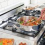 Aggiungete le verdure a pezzetti e dell’acqua fino a quasi coprire la carne; chiudete poi il coperchio e fate cuocere il tutto a fuoco medio per 23/30 minuti.